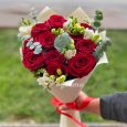 Букет амариллисов, роз и эвкалипта