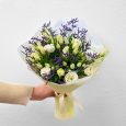 Букет эустом, тюльпанов и гипсофилы