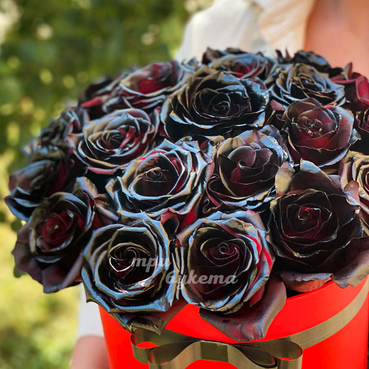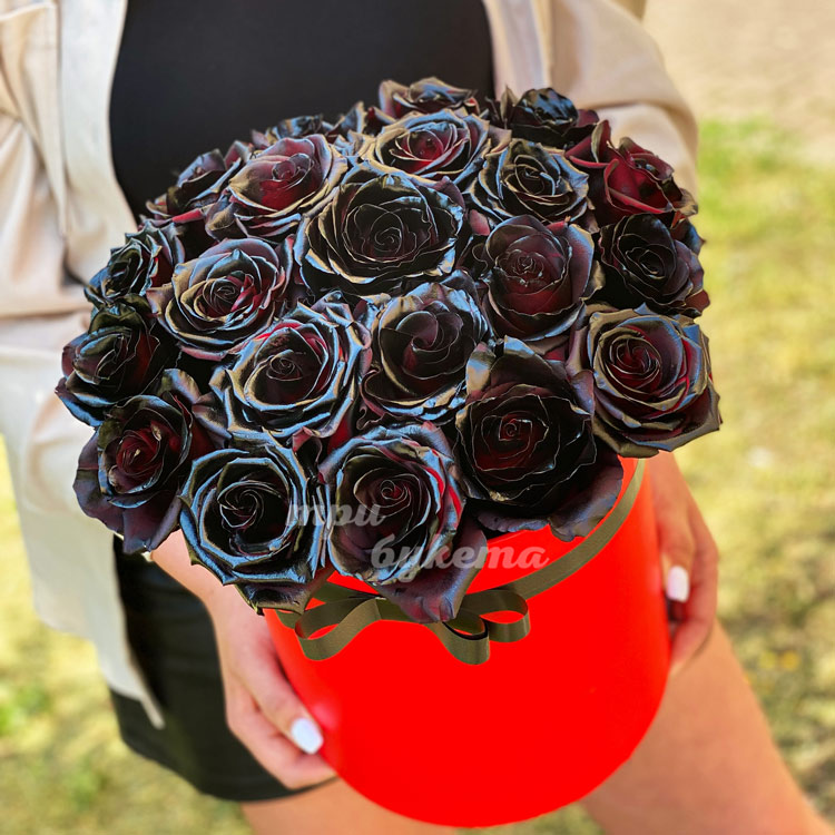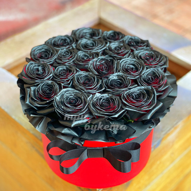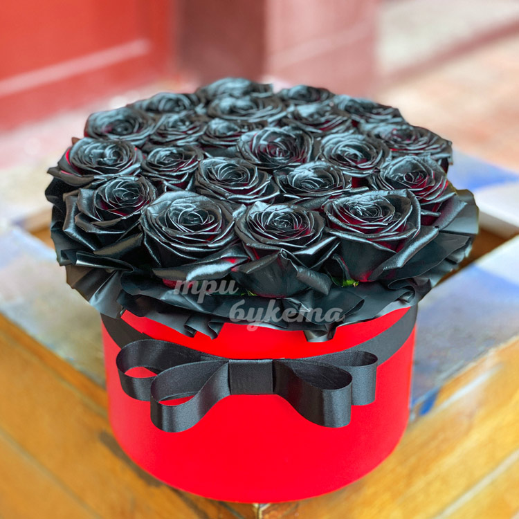 21 черная роза в шляпной коробке