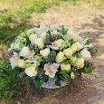 51 разноцветная роза в корзине