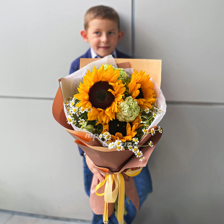 Букет подсолнухов и ромашек на 1 сентября