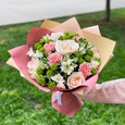 Букет розовых гербер, гвоздик и роз