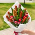 Колбасный букет с овощами и багетами
