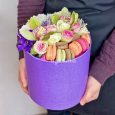 Коробка с 5 макарунами и хризантемами