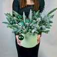 Корзина с новогодним декором и цветами