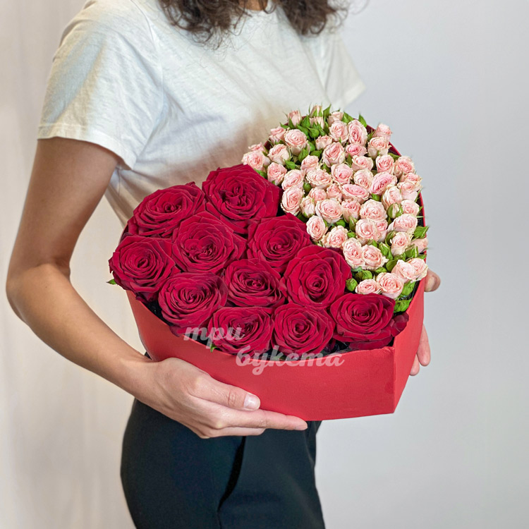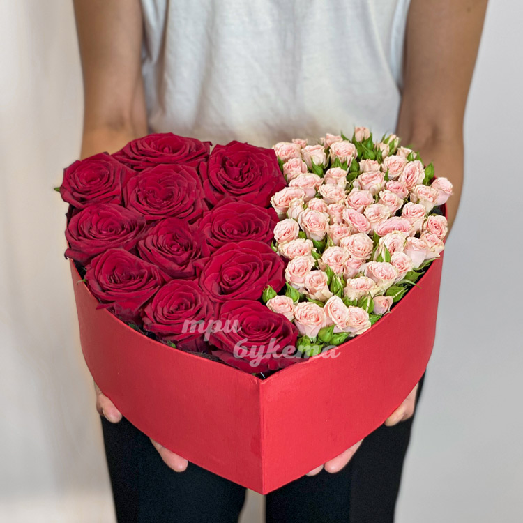 Сердце из кустовых и одноголовых роз